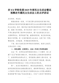 在XX学校党委2025年度民主生活会暨巡视整改专题民主生活会上的点评讲话