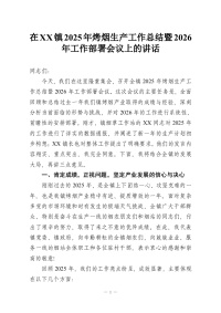 在XX镇2025年烤烟生产工作总结暨2026年工作部署会议上的讲话