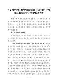XX市水利工程管理局党委书记2025年度民主生活会个人对照检查材料