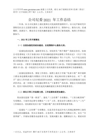 公司党委关于2021年落实全面从严治党责任情况的报告