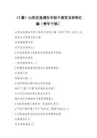 (7篇)山阳区选调生年轻干部发言材料汇编(青年干部)