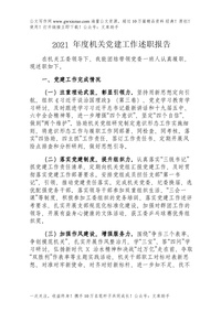 2021年度市委政法委机关党组织书记抓党建工作述职