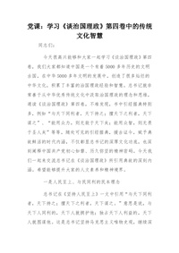 党课:学习《谈治国理政》第四卷中的传统文化智慧