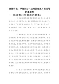 党课讲稿:学好用好《谈治国理政》第四卷的重要性