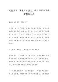 交流发言:聚焦三点发力,推动公司学习教育落地生根