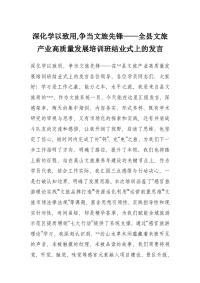 深化学以致用,争当文旅先锋——全县文旅产业高质量发展培训班结业式上的发言
