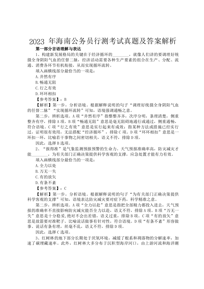 2023年海南公务员行测考试真题及答案解析