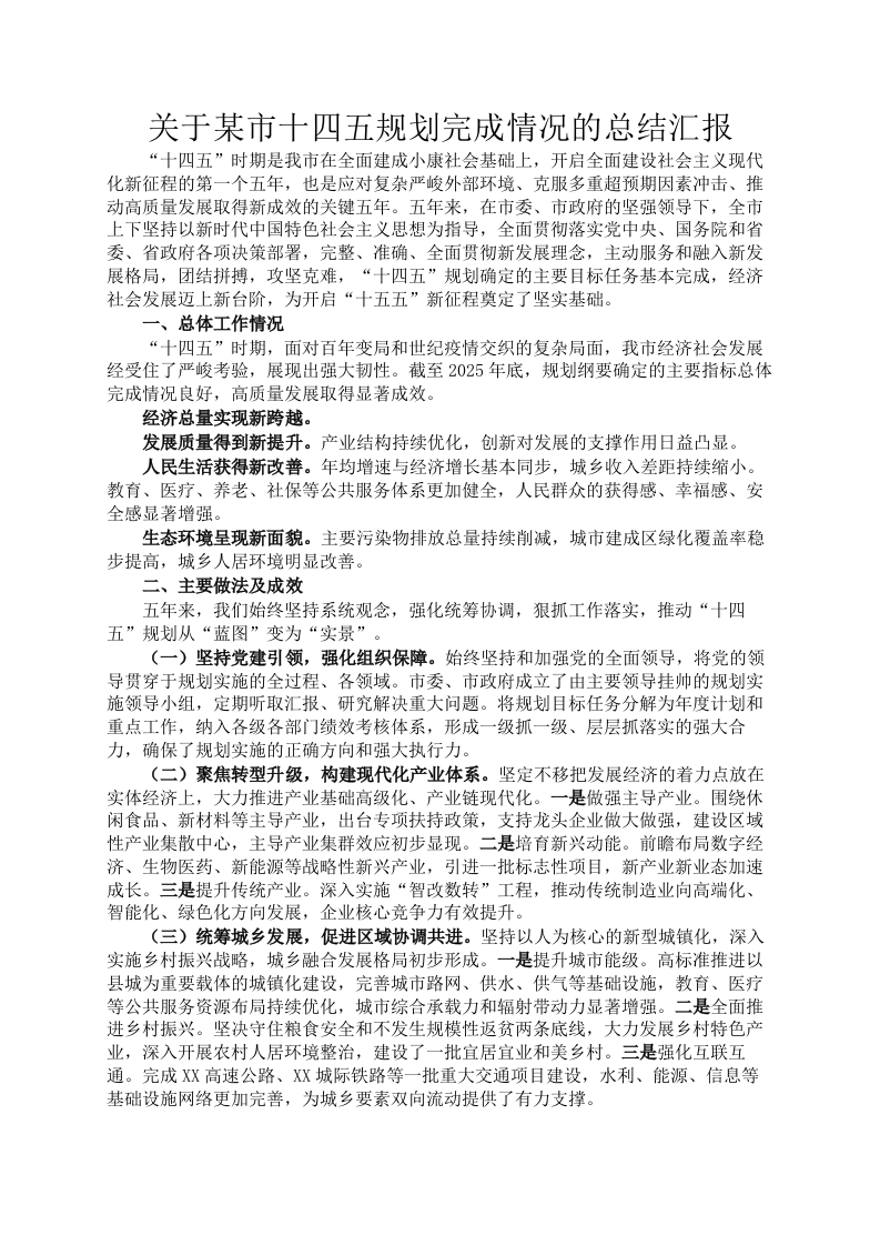 首页精选范文关于某市十四五规划完成情况的总结汇报