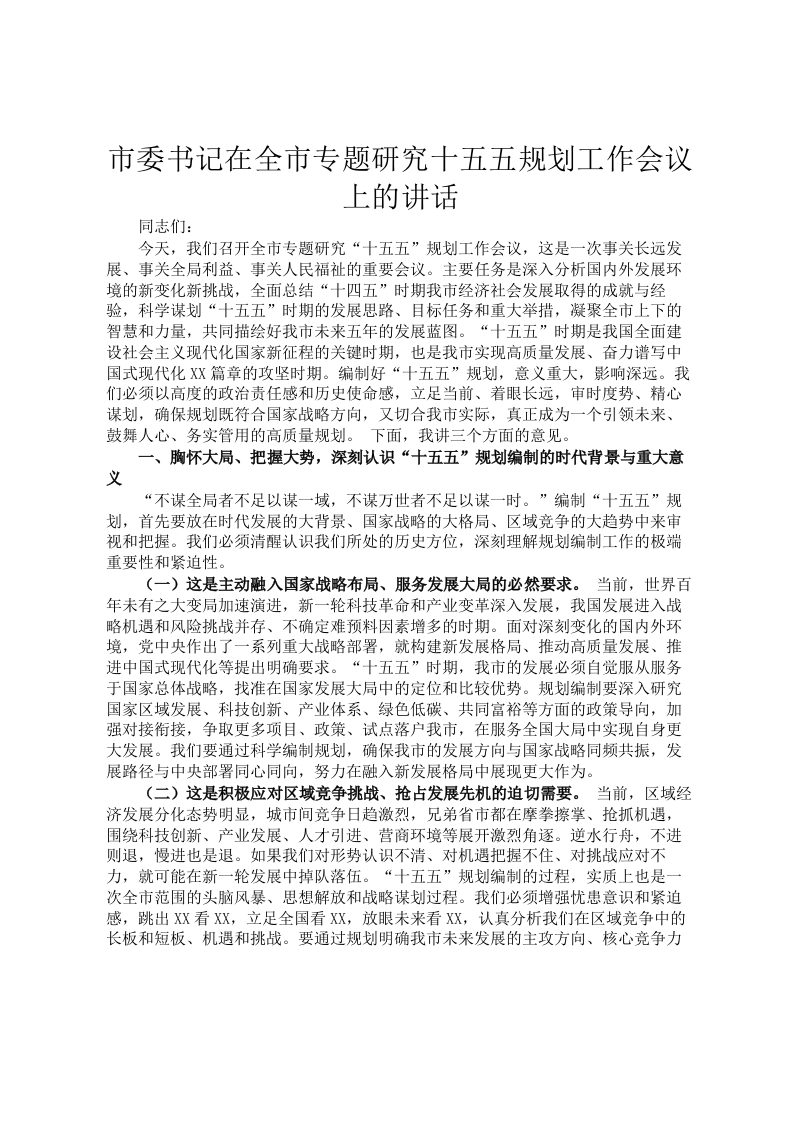 市委书记在全市专题研究十五五规划工作会议上的讲话