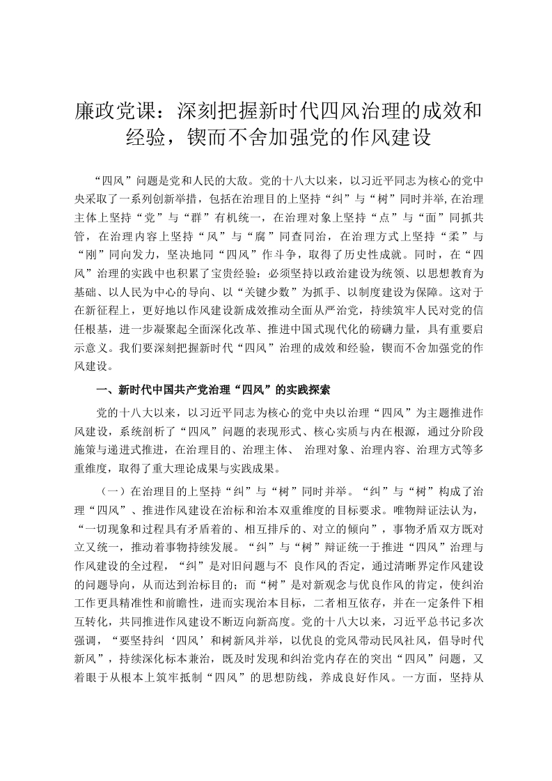 廉政党课:深刻把握新时代四风治理的成效和经验,锲而不舍加强党的作风建设