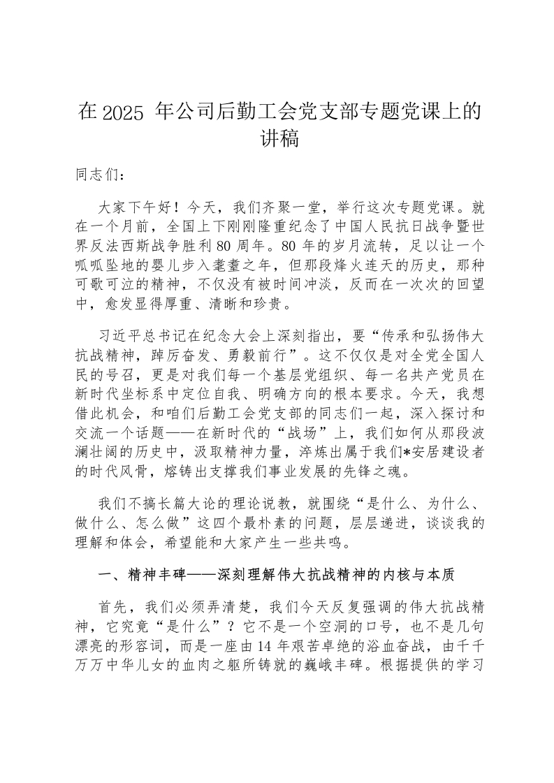 在2025年公司后勤工会党支部专题党课上的讲稿