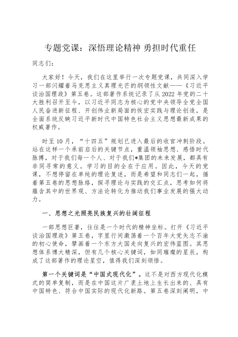 首页写作素材专题党课:深悟理论精神 勇担时代重任