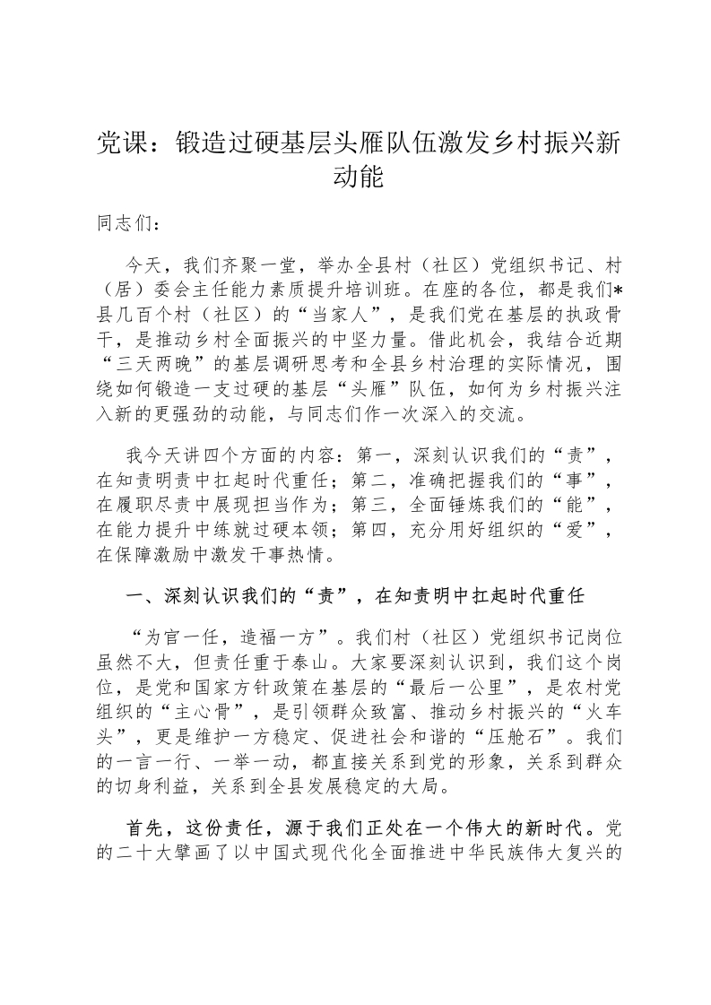 党课:锻造过硬基层头雁队伍激发乡村振兴新动能
