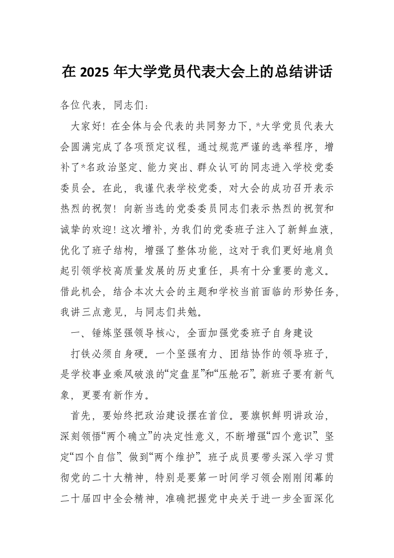 首页工作文档在2025年大学党员代表大会上的总结讲话