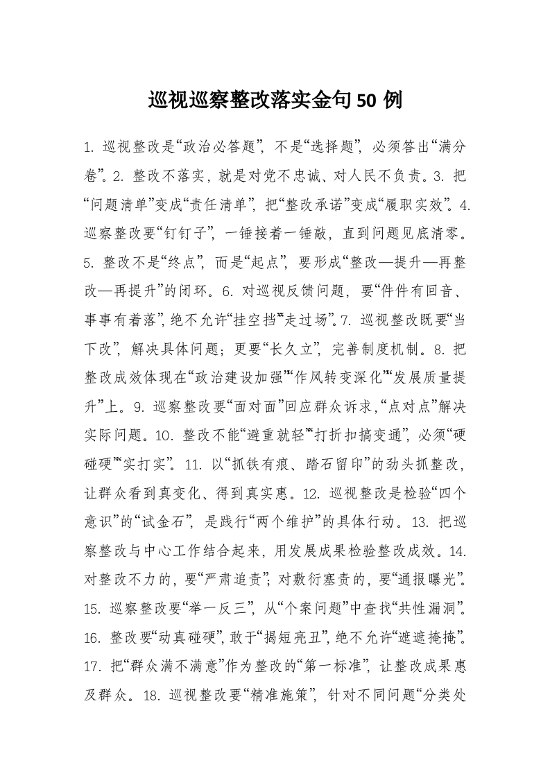 首页工作文档巡视巡察整改落实金句50例
