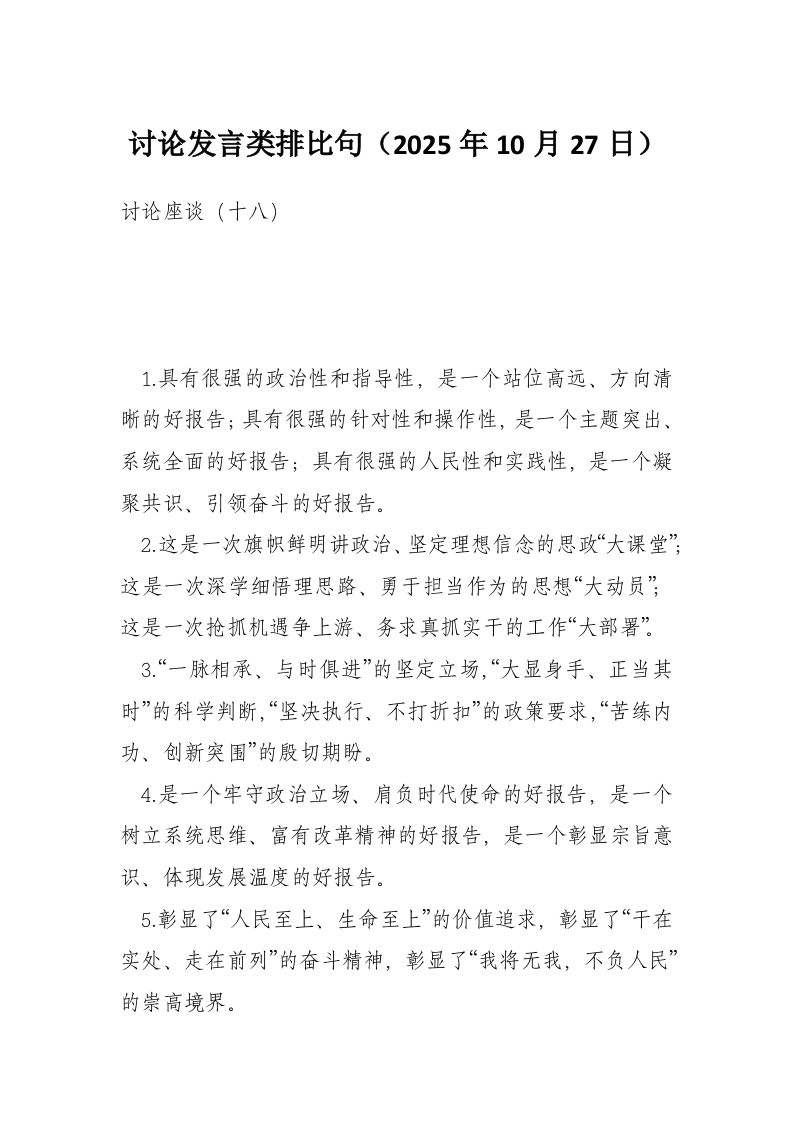 首页每日金句讨论发言类排比句(2025年10月27日)