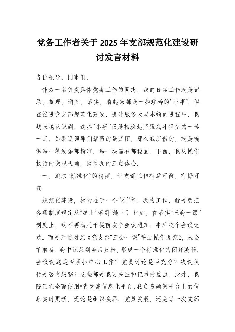 党务工作者关于2025年支部规范化建设研讨发言材料
