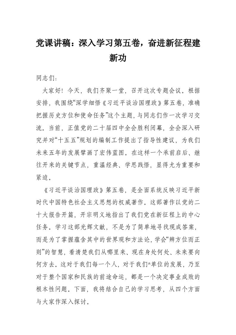 党课讲稿:深入学习第五卷,奋进新征程建新功