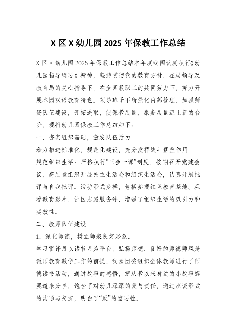 X区X幼儿园2025年保教工作总结