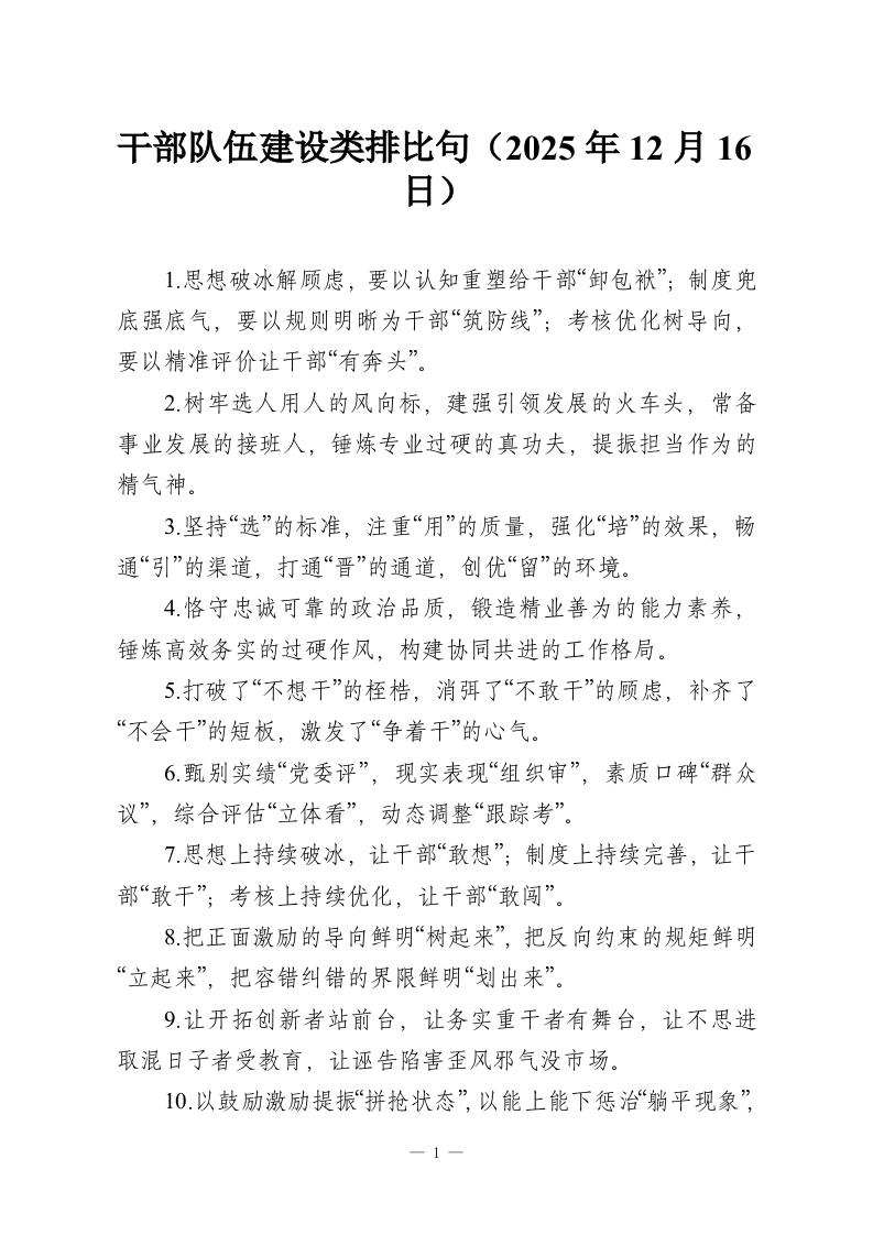 首页每日金句干部队伍建设类排比句(2025年12月16日)