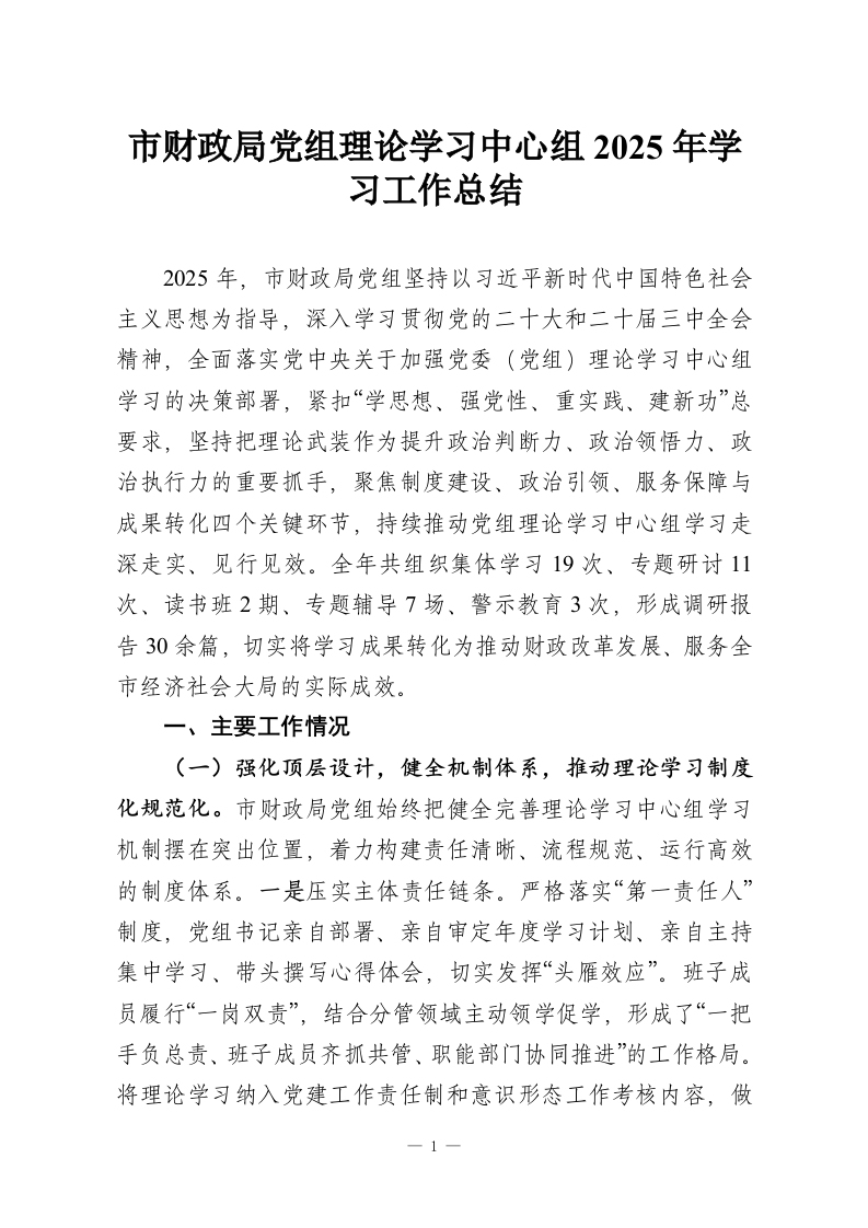 首页工作文档市财政局党组理论学习中心组2025年学习工作总结
