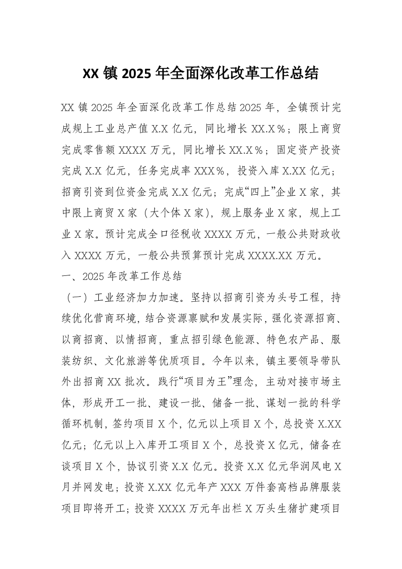 首页材料汇编XX镇2025年全面深化改革工作总结