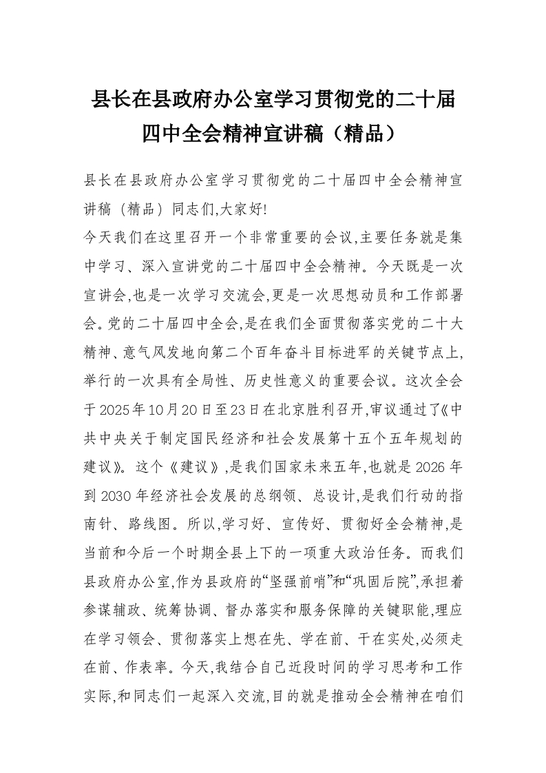 县长在县***办公室学习贯彻党的二十届四中***精神宣讲稿(精品)