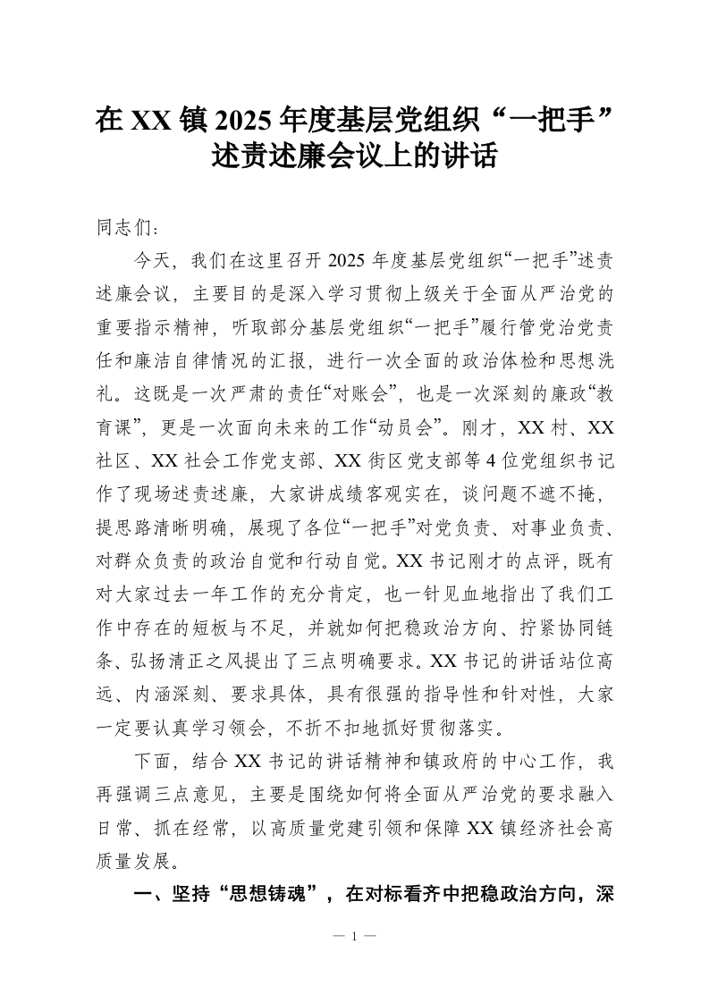 在XX镇2025年度基层党组织“一把手”述责述廉会议上的讲话