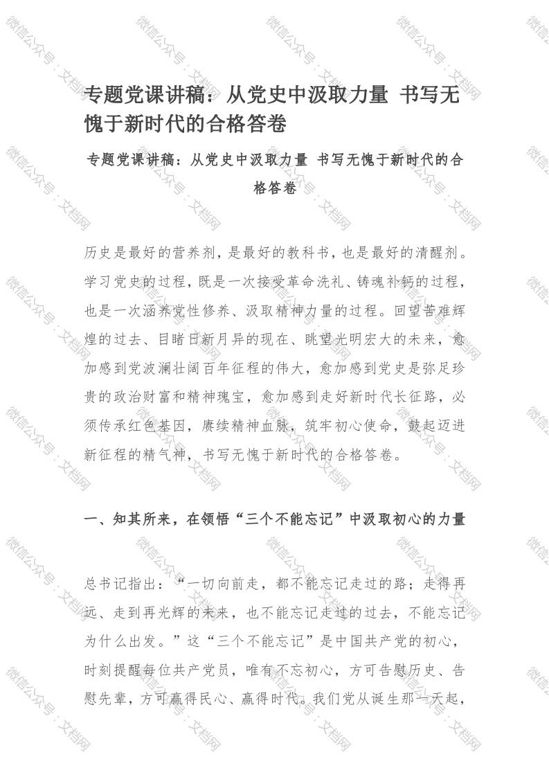 首页精选范文专题党课讲稿:从党史中汲取力量 书写无愧于新时代的合格答卷
